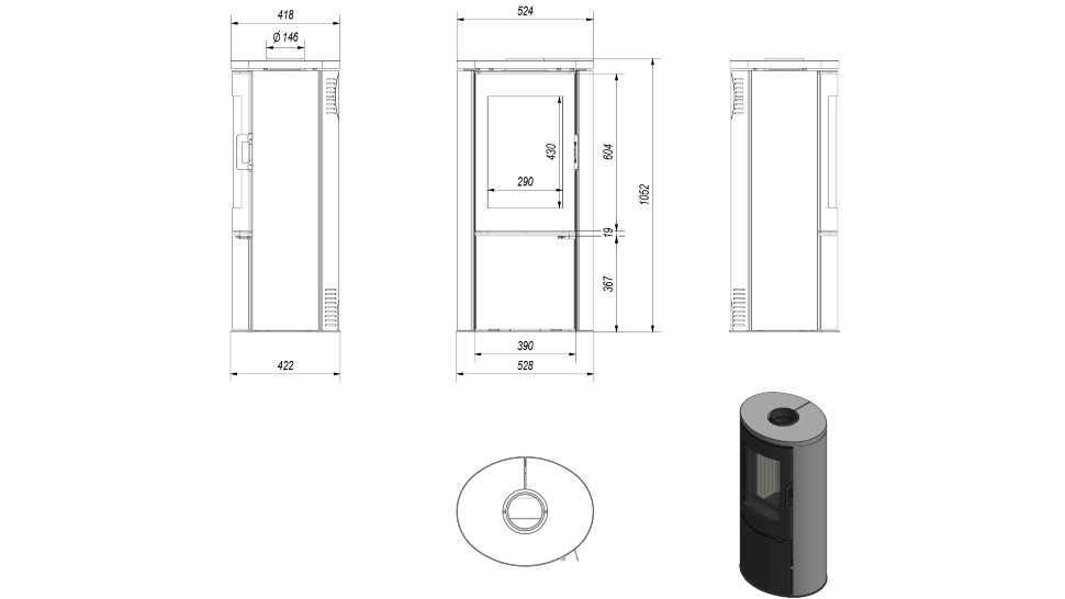 • Диаметр дымохода, (мм)